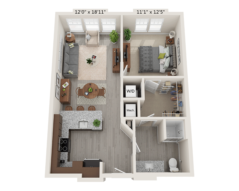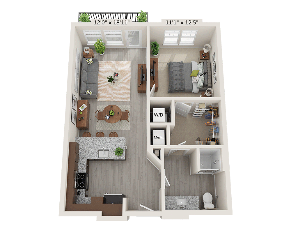 - One Bedroom A1D1 Bed | 1 Bath | 725 Sq. Ft.
