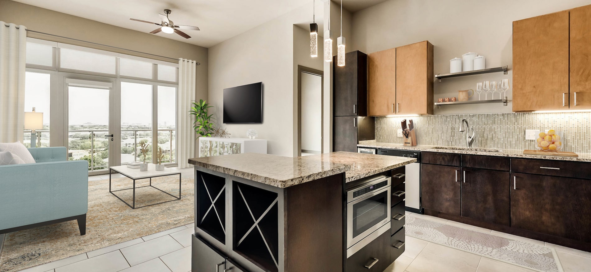 Take in the view from 13-stories up in the SkyVue Lounge. Here, you can entertain friends, hone your culinary skills in the demonstration kitchen, or simply unwind with a glass of wine. Plus, the Skyvue Lounge is available to rent for private parties through Peerspace.