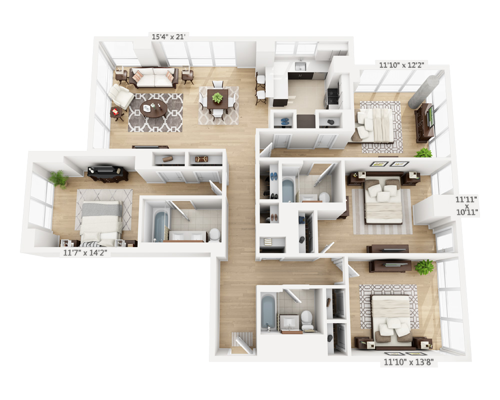 - Four Bedroom (D4A-808)4 Bed | 4 Bath | 1973 Sq. Ft.