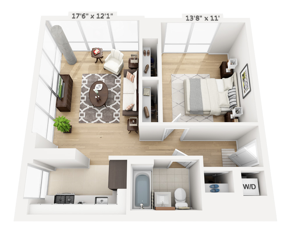 - One Bedroom (A1F-805)1 Bed | 1 Bath | | 685 Sq. Ft.