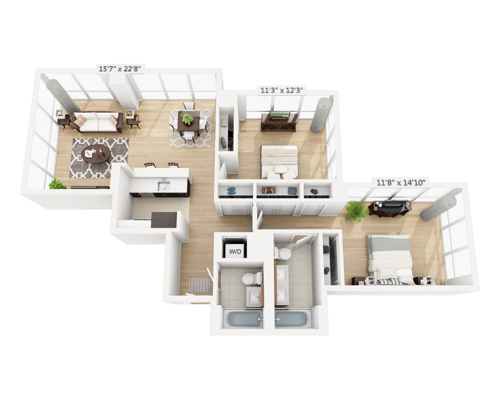 - Two Bedroom (B2D-801)2 Bed | 2 Bath | 1132 Sq. Ft.