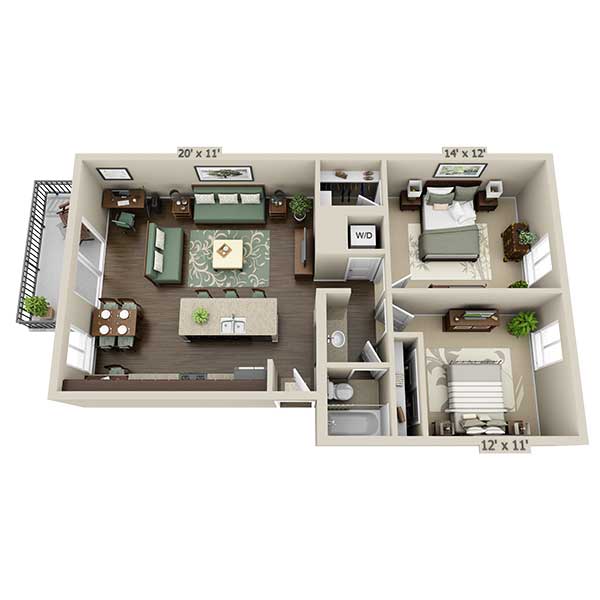 Rent starting at: $2,246Available Date: Now - B2B-R2 Bed | 2 Bath | 1120 Sq. Ft.124 recent views
