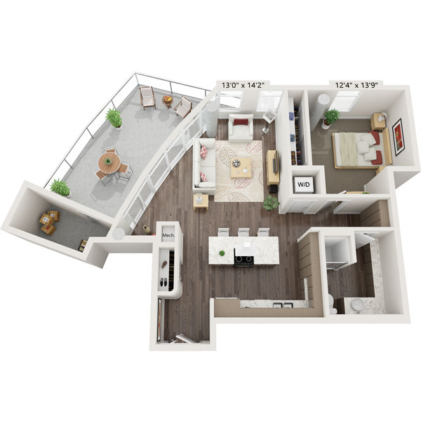 - Highrise A1L1 Bed | 1 Bath | 754 Sq. Ft.