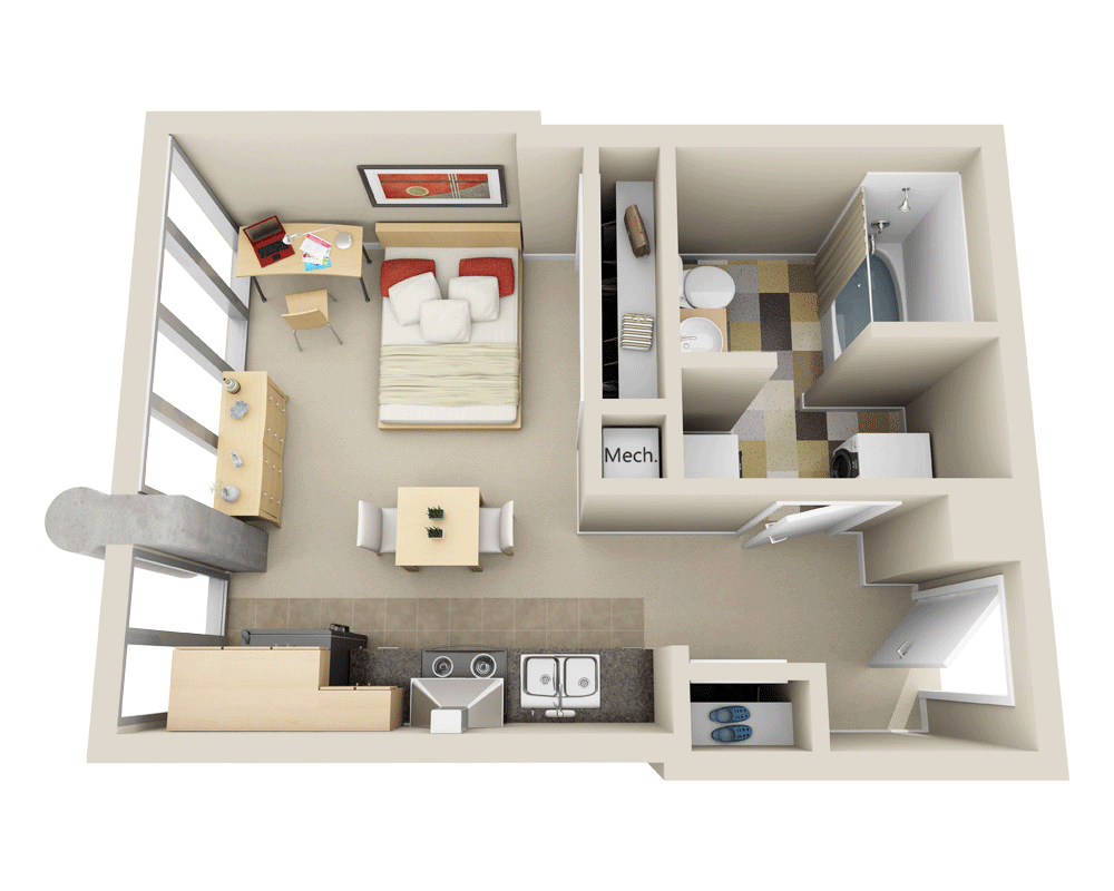 - Highrise E1AStudio | 1 Bath | 426 Sq. Ft.
