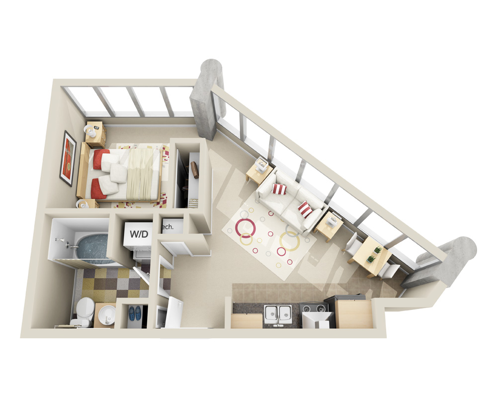- Midrise A1E1 Bed | 1 Bath | 570 Sq. Ft.