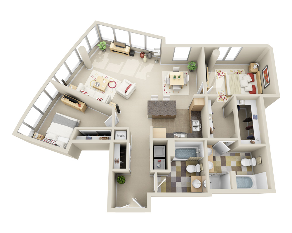- Highrise B2M2 Bed | 2 Bath | | 1345 Sq. Ft.